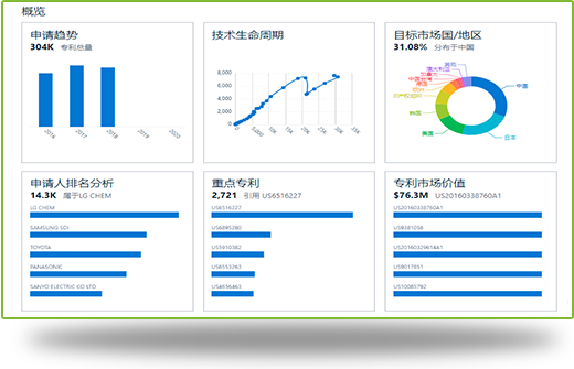 呈现现有技术分布全貌,展示竞争对手的技术强弱领域,为研发给予参考。