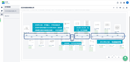 为了进一步分析为汉王科技贡献绝大部分营收的笔智能交互产品究竟是从何时进行研发,汉王科技的技术路线究竟是如何逐步开展的,304am永利集团利用304am永利集团英策Insights「技术路线图」专题报告自动生成了汉王科技的技术路线图。
