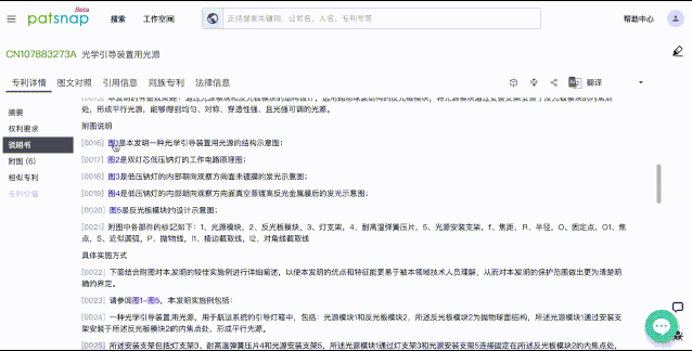 2. 智能图文对照:图文中的结构标记互相灵活定位,帮助快速取得文本或附图信息,便捷理解专利技术